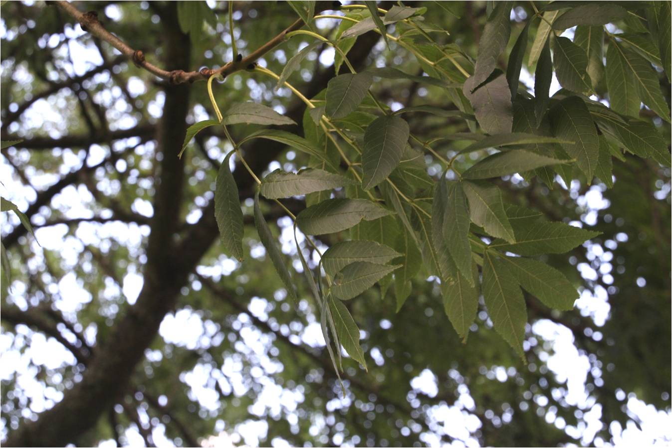 Leaf edges more serrated than those of ash. Orange berries rather than the dropping clusters of winged “keys” seen in the common ash.